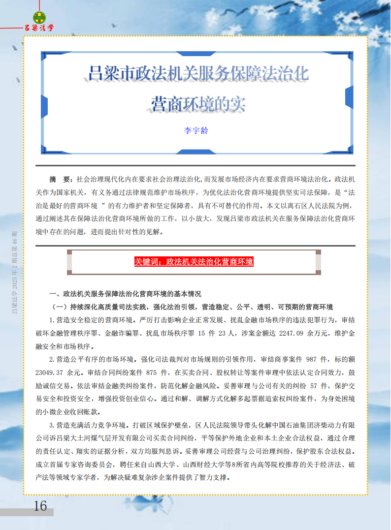 《吕梁法学》2025年第2期